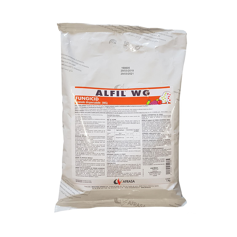Alfil WG este un fungicid sistemic pe baza de fosetil de aluminiu pentru combaterea bolilor la vita de vie si pomi fructiferi.