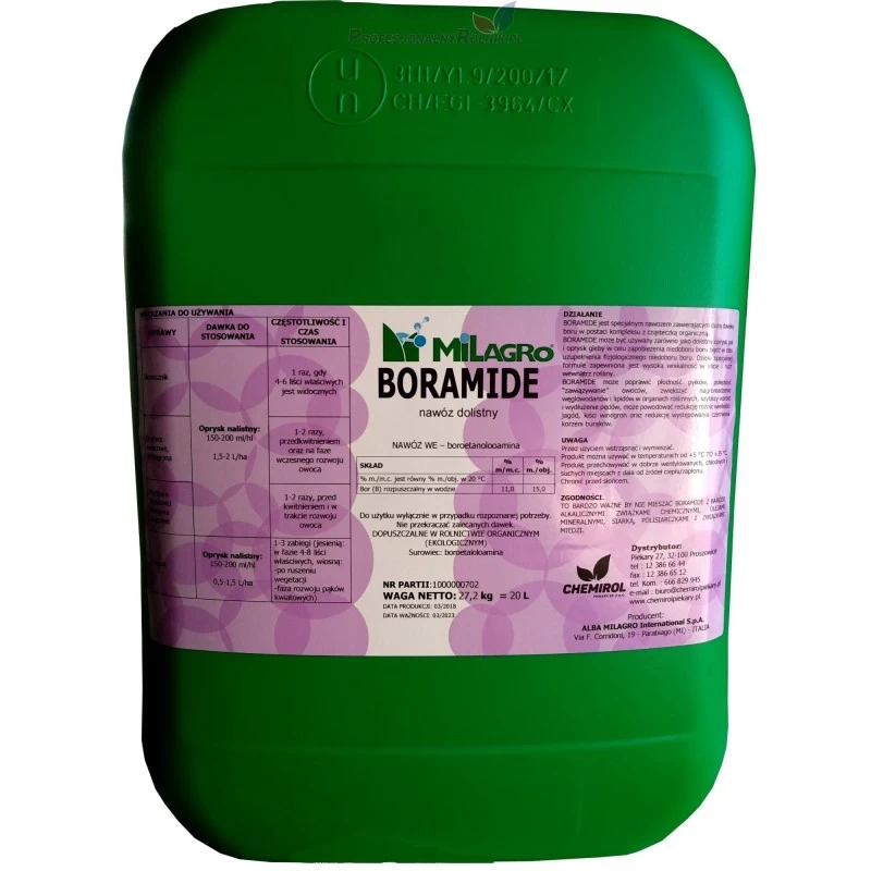 BORAMIDE ® este un fertilizant lichid pe baza de bor si monoetanolamina, o molecula organica cu mobilitate ridicata usor asimilabila de tesuturile vegetale.